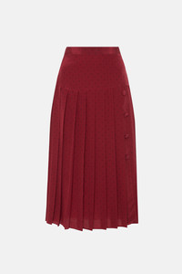 Polka dot print pleated skirt in bordeaux-black silk with buttons Composition 100% silk Lining: 100% cupro Colour: bordeaux Made in Italy Product code: FABX4076 F4508 1981