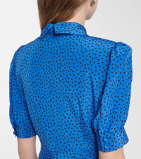 Product Details - Material: 100% silk - Care instructions: dry clean - Made in Italy - Designer color name: Bluette-Black - Closure: buttoned front - Lining: 100% cupro - Lining II: 100% polyamide - Fully lined - Item number: P01003621 Size & Fit - True to size - Oversized shoulders - Shoulder pad inserts - Cinched waist - Non-stretchy fabric - The model seen in the picture is 178cm-5'10" and wearing a size IT 40