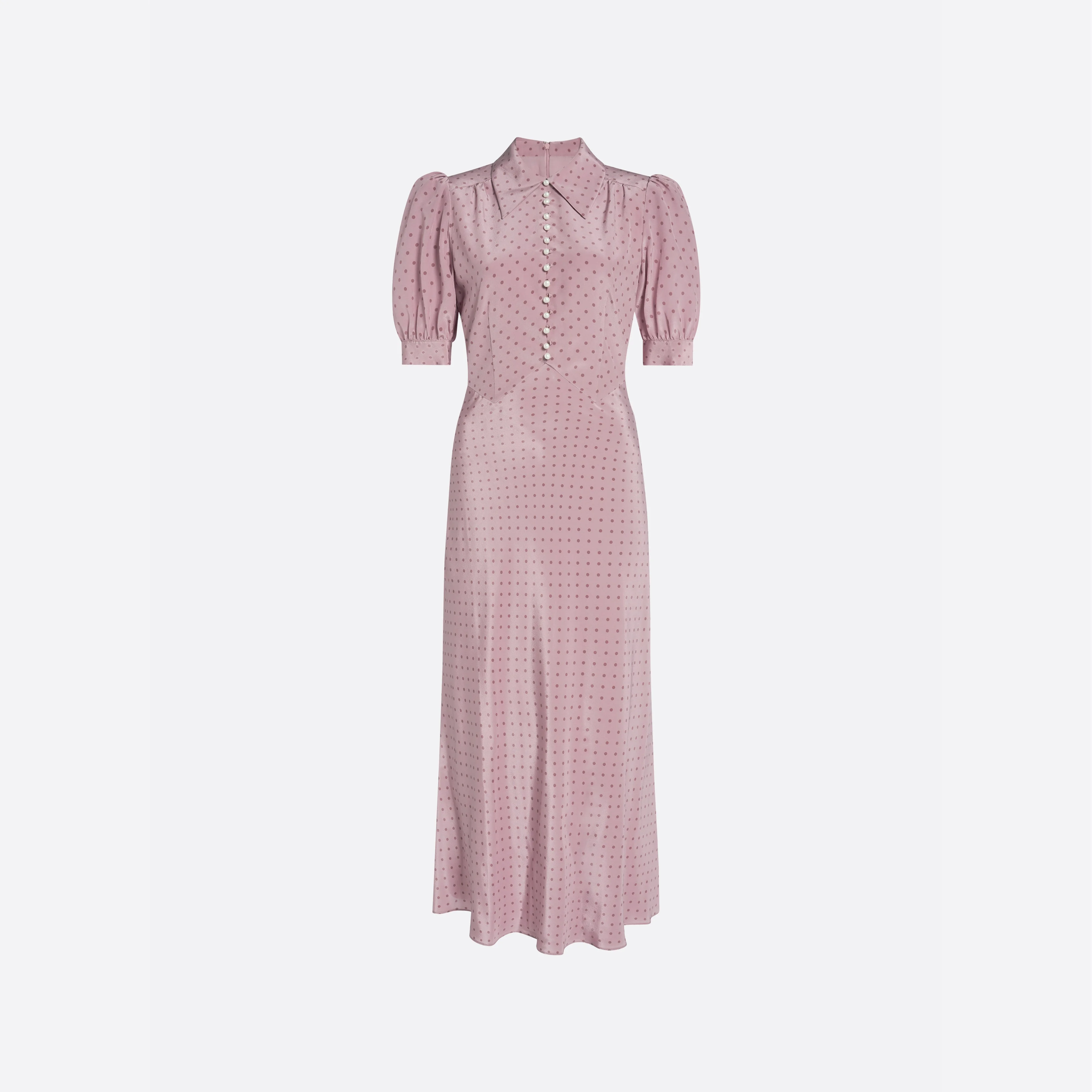 Print silk midi dress with collar and buttons Composition 100% silk Lining: 100% polyester Lining 2: 100% polyamide Colour: mauve-mauve Made in Italy Product code: FABX3598 F4686 1941