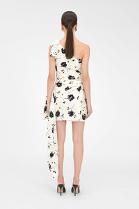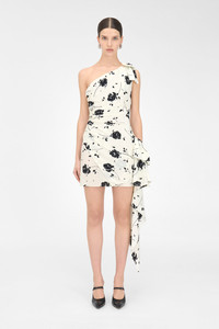 Rose print silk one shoulder mini dress Composition 100% silk Lining: 100% polyester Colour: white-black Made in Italy Product code: FABX4149 F4567 0822