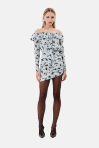 Rose print silk off the shoulder mini dress DETAILS (A)100%SE LINING: (A)100%CU Style reference : FABX3609 F4212 1692 PALE BLUE