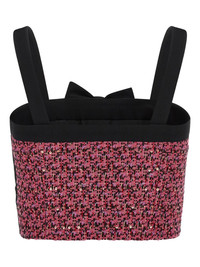 sequin-embellished tweed top Highlights - Pink - Tweed texture - Micro-sequin embroidery - Front metal buttons - Bow detail - Shoulder straps Made in Italy Composition Polyamide 51%, Virgin Wool 35%, Polyester 14% Washing instructions Read Manufacturer Guidelines