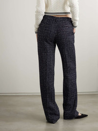 EDITORS'NOTES Tailoring takes on a glamorous and elegant mood when Alessandra Rich is designing. These pants are cut from tweed, flecked with shimmering yarn and sprinkled with tiny sequins to make the fabric even more interesting. Team them with a white tee and the matching blazer in our edit. SIZE & FIT - Fits true to size, however those who are between sizes should take the smaller size - High-rise, cut for a straight-leg fit - Slightly long in length - Mid-weight, non-stretchy fabric - Model is 175cm/ 5'9" and is wearing an IT 38 DETAILS & CARE - Navy, white and metallic black tweed - Concealed hook, button and zip fastening at front - 87% polyamide, 13% polyester; lining: 100% viscose - Dry clean