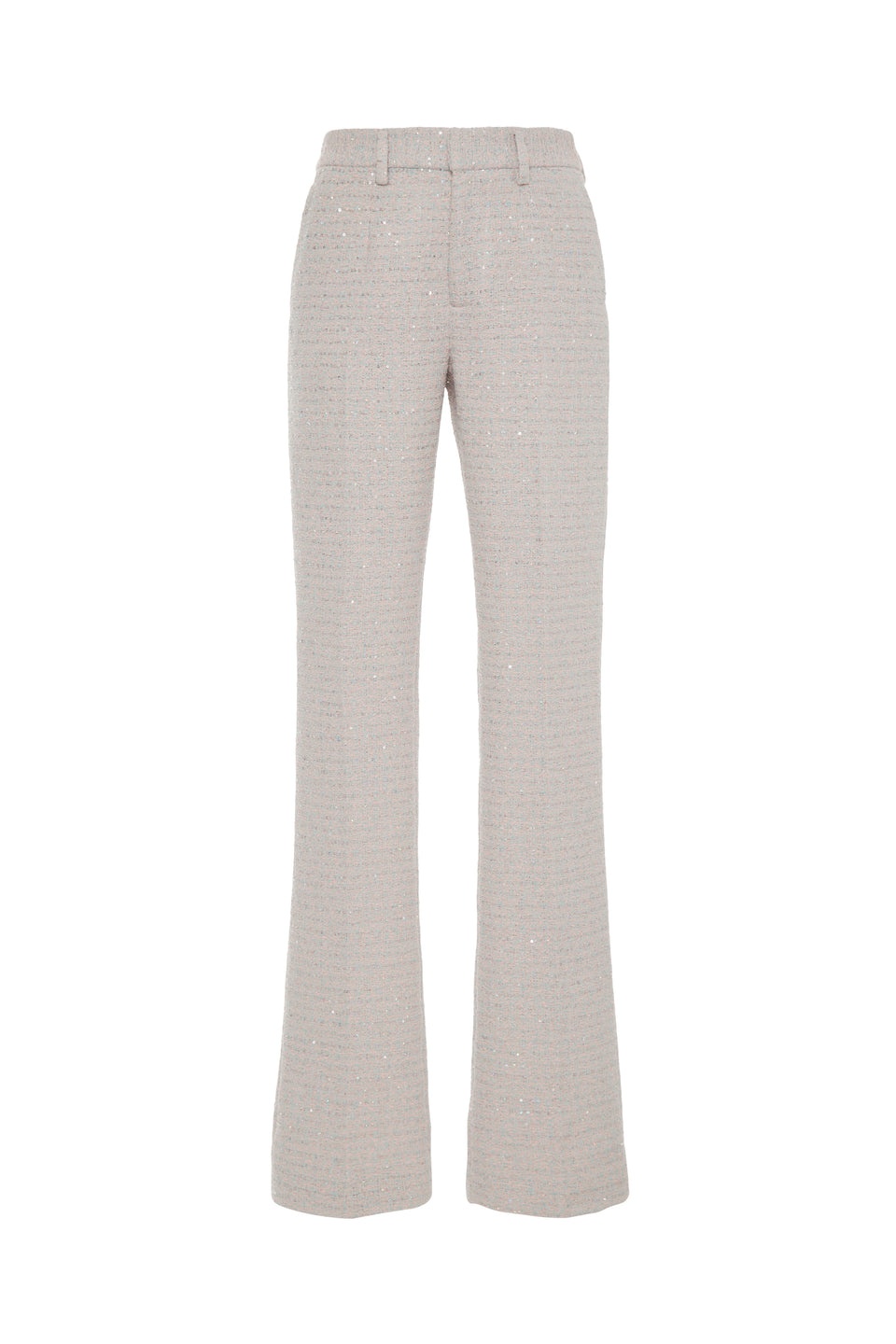 SEQUIN TWEED TROUSERS DETAILS (A)72%CO 18%PL 10%PA LINING: (A)100%VI Style reference : FAB3300 F4083 1932 LIGHT BLUE-PINK