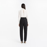 Sequin tweed trousers Composition 32% polyamide 24% viscose 20% cotton 15% polyester 9% acrylic Lining: 100% polyester Colour: black Made in Italy Product code: FABX4362 F4714 0900