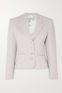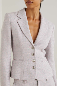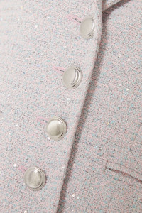 EDITORS'NOTES Alessandra Rich's blazer will look so chic worn with the matching pants. It's tailored from cotton-blend bouclé-tweed made using the softest blue and pink yarns and flecked with sequins for a subtle shimmer. The strong, padded shoulders and tapered notch lapels frame your face beautifully. SIZE & FIT - Fits true to size, take your normal size - Tailored for a slim fit - Internal shoulder pads - Mid-weight, non-stretchy fabric - Model is 177cm/ 5'10" and is wearing an IT 40 DETAILS & CARE - Tonal-blue and pink cotton-blend bouclé-tweed - Button fastenings through front - 72% cotton, 18% polyester, 10% polyamide - Dry clean