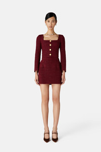 Sequin tweed square neck jacket Composition 30% polyamide 23% viscose 20% cotton 14% polyester 9% acrylic 4% other fibres Lining: 100% viscose Colour: bordeaux-black Made in Italy Product code: FABX3996 F4512 1999