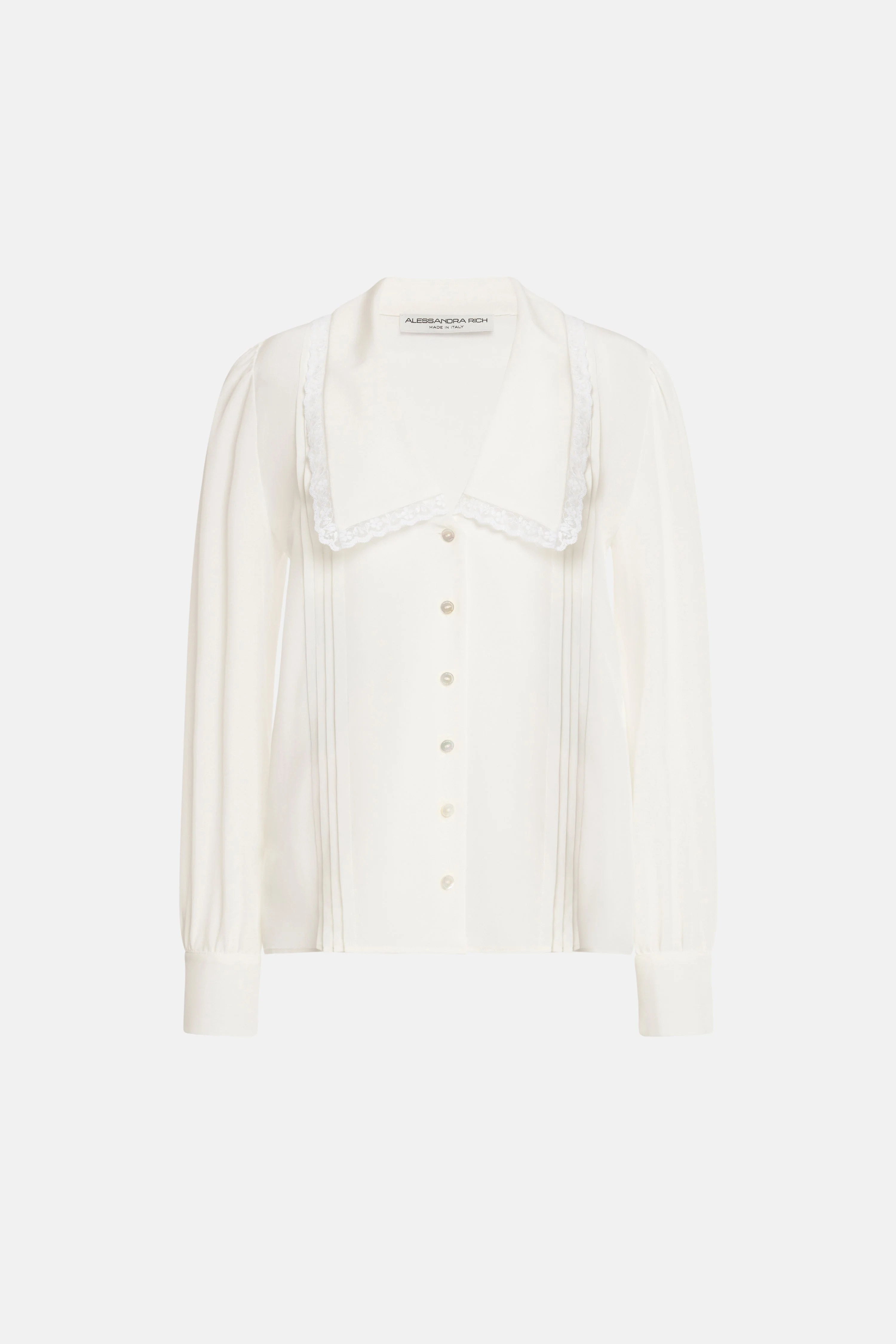 Silk blouse with collar and lace Composition 100% silk Collar: 84% polyamide 16% rayon Colour: white Made in Italy Product code: FABX4094 F3057 0822