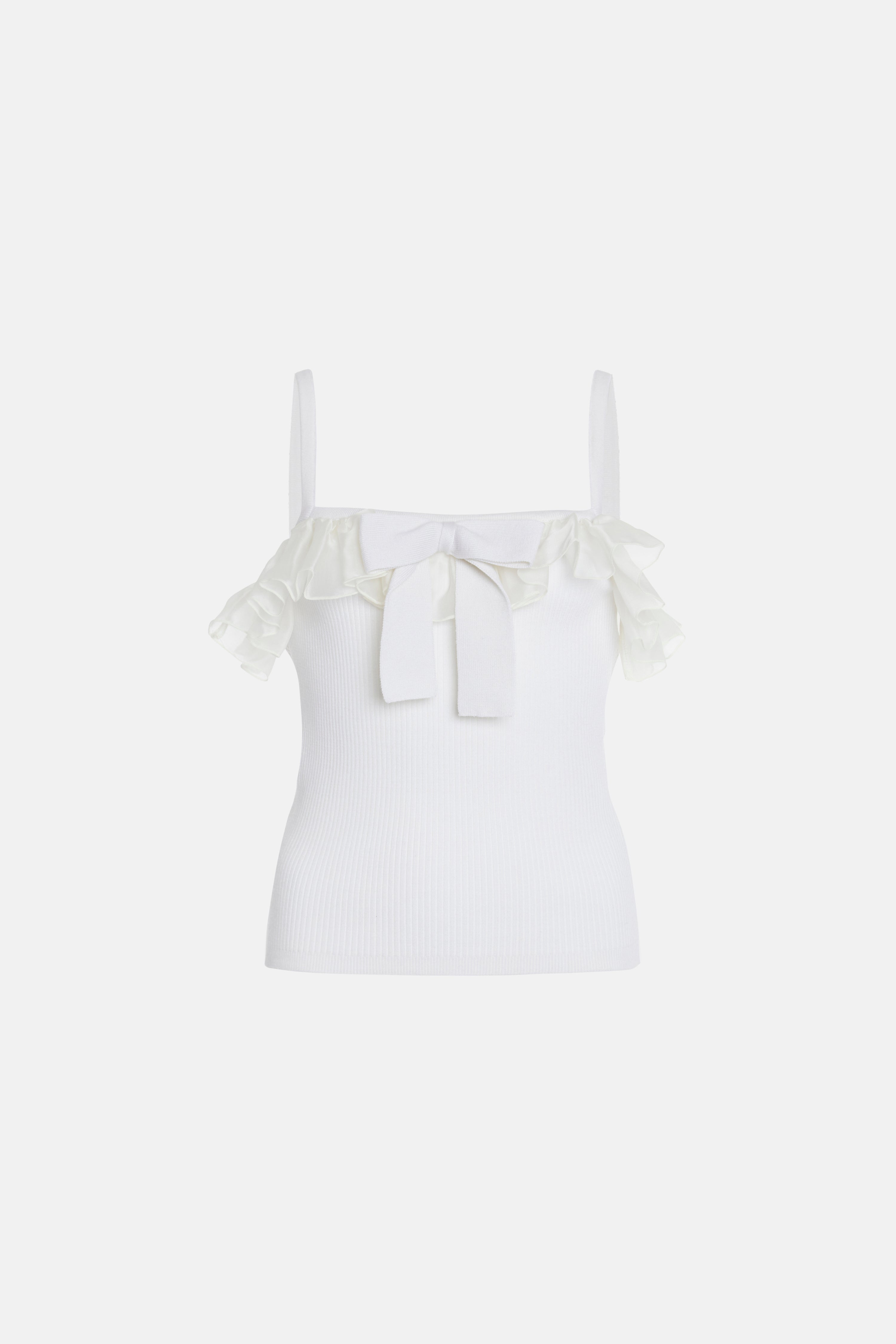 Merino wool knit top with silk organza ruches (A)90%WO 10%WS (B)100%SE Style reference : FABX4046 K4514 0001 WHITE