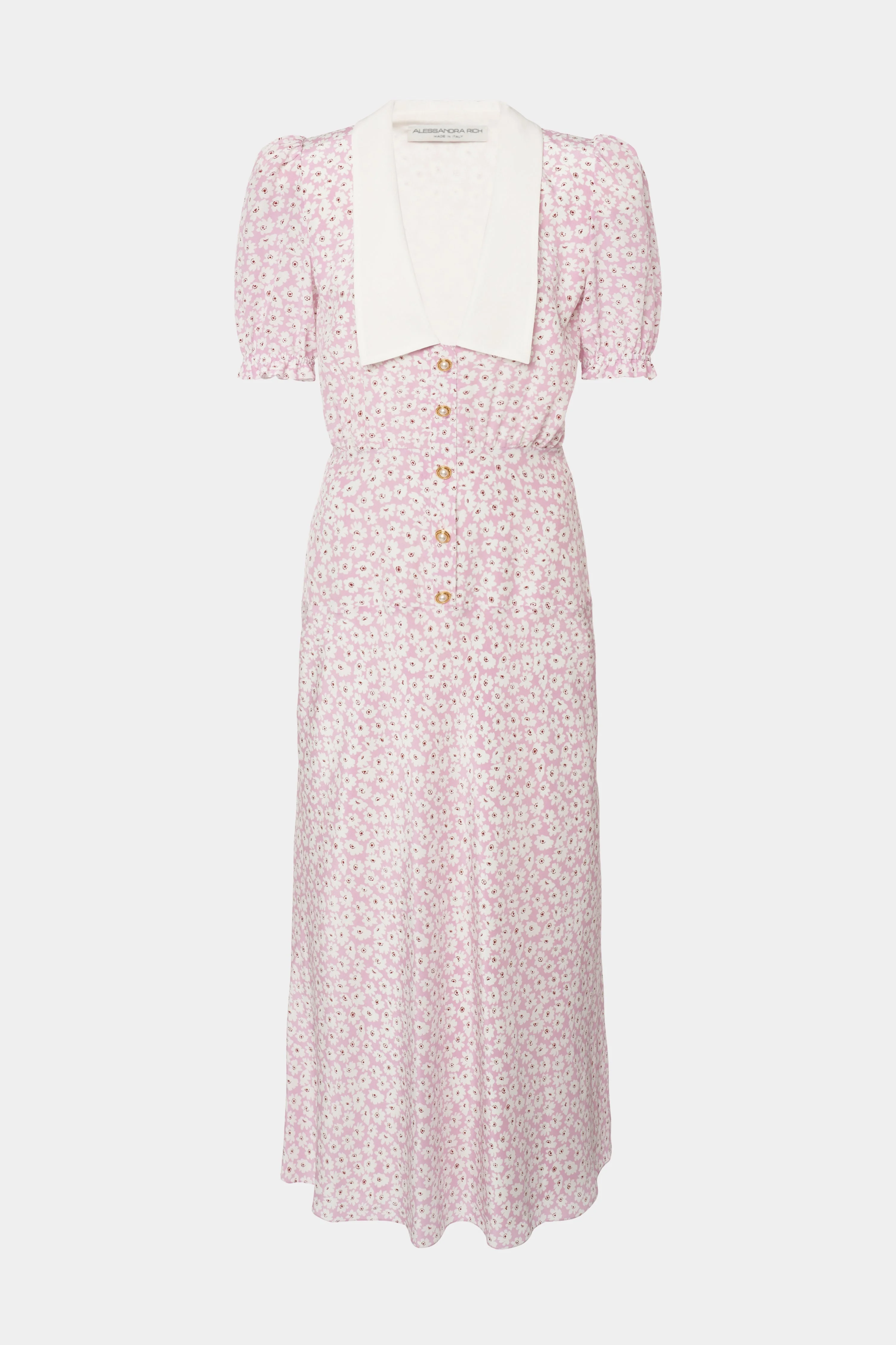 Small flower print silk dress with collar Composition 100% silk Collar: 100% silk Lining A: 100% polyester Lining B: 100% polyamide Colour: pink-white Made in Italy Product code: FABX4113 F4569 1816