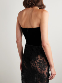 Strapless Bow-embellished Velvet Thong Bodysuit