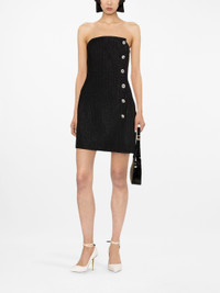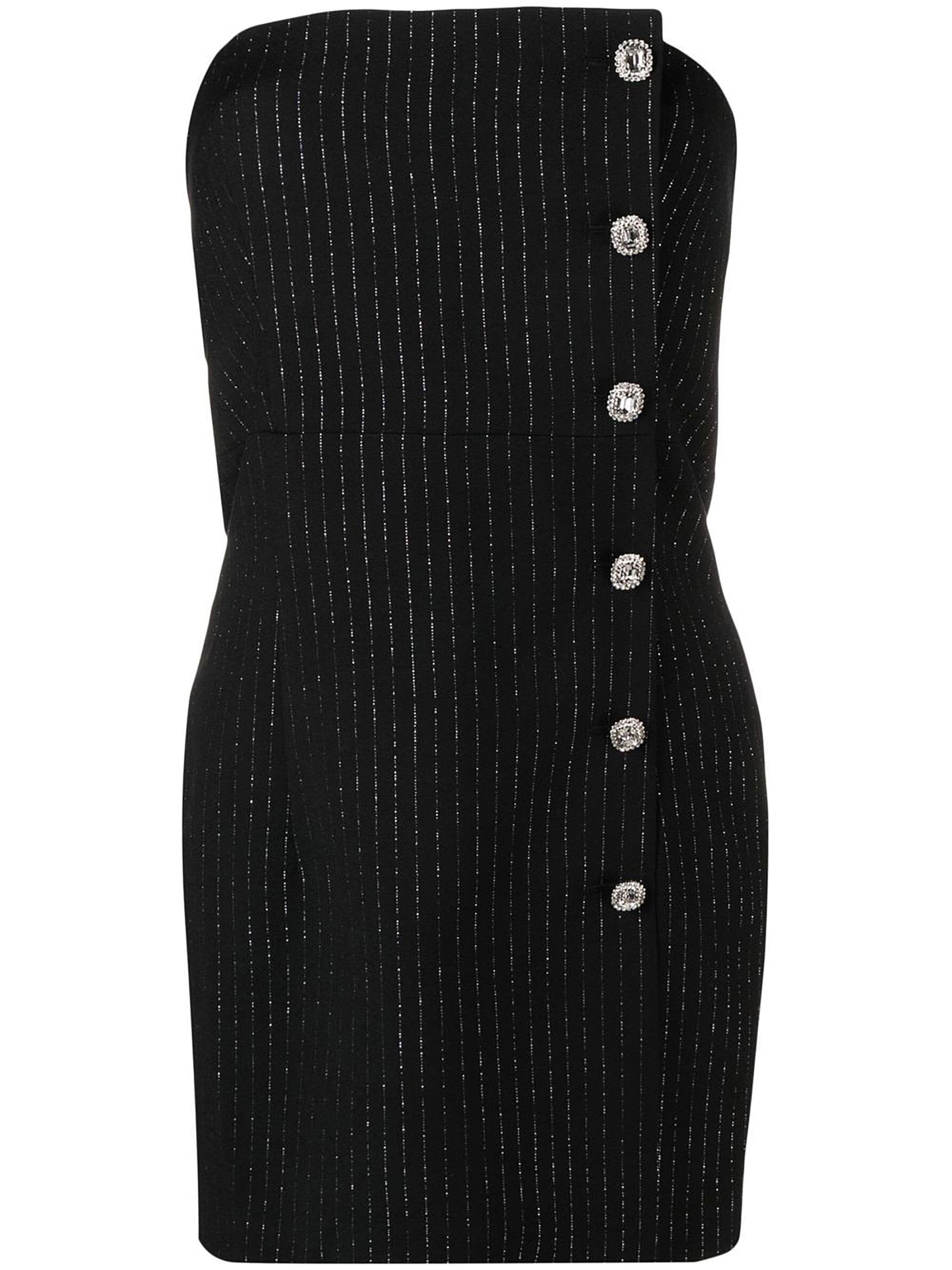 black virgin wool blend strapless pinstripe pattern decorative button detailing Size & Fit Model Measurements: Height: 1.78 m Bust/Chest: 76.0 cm Hips: 88.0 cm Waist: 60.0 cm Model wears size 40 Fabric and Care Designer Style ID: FAB3217 Designer Colour: 930 - BLACK-SILVER Composition: Outer: Polyamide 2%, Virgin wool 96%, Polyester 2%; Lining: Polyamide 78%, Spandex/elastane 22%, Viscose 100% Washing instructions: Dry Clean Only Made in Italy
