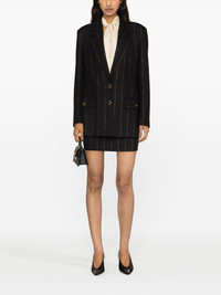 striped single-breasted blazer Highlights - Black/grey - Virgin wool blend - Vertical stripe pattern - Gold-tone buttons - Notched lapels - Front button fastening - Long sleeves - Buttoned cuffs - Two front flap pockets - Straight hem Made in Italy Composition Outer: Virgin Wool 94%, Polyester 6% Lining: Viscose 100% SIZE & FIT FittingInformation Designed for a relaxed fit, this piece allows for comfort and movement when worn The internal shoulder pads offer a structured shape Made from a midweight non-stretch fabric This piece fits true to size – take your usual size Washing instructions Dry Clean Only