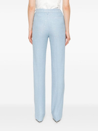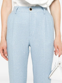 sequin-embellished tweed trousers Highlights - Aqua blue - Tweed - Boucle construction - Sequin embellishment - Pleat detailing - Belt loops - Front button and zip fastening - Two side slash pockets - Two rear welt pockets - Tailored bootcut leg Made in Italy Composition Outer: Polyamide 50%, Virgin Wool 35%, Polyester 15% Lining: Viscose 100% SIZE & FIT Model measurements Height 5 ft 11 in(1.8 m) Bust/Chest 32.67 in(83 cm) Hips 36.22 in(92 cm) Waist 25.19 in(64 cm) FittingInformation Designed for a slim fit, these trousers offer a close fit at the waist, allowing a comfortable close fit and some movement over the leg Made from a midweight non-stretch fabric This piece fits true to size – take your usual size