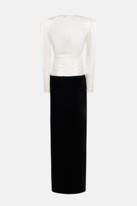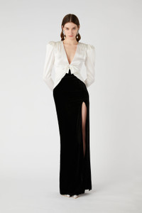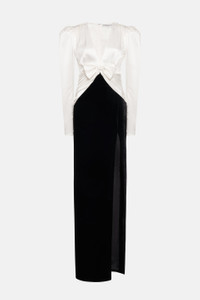 VELVET AND SILK SATIN DRESS WITH BOW AND SPLIT
