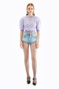 Lilac vichy knitted jumper with hotfix