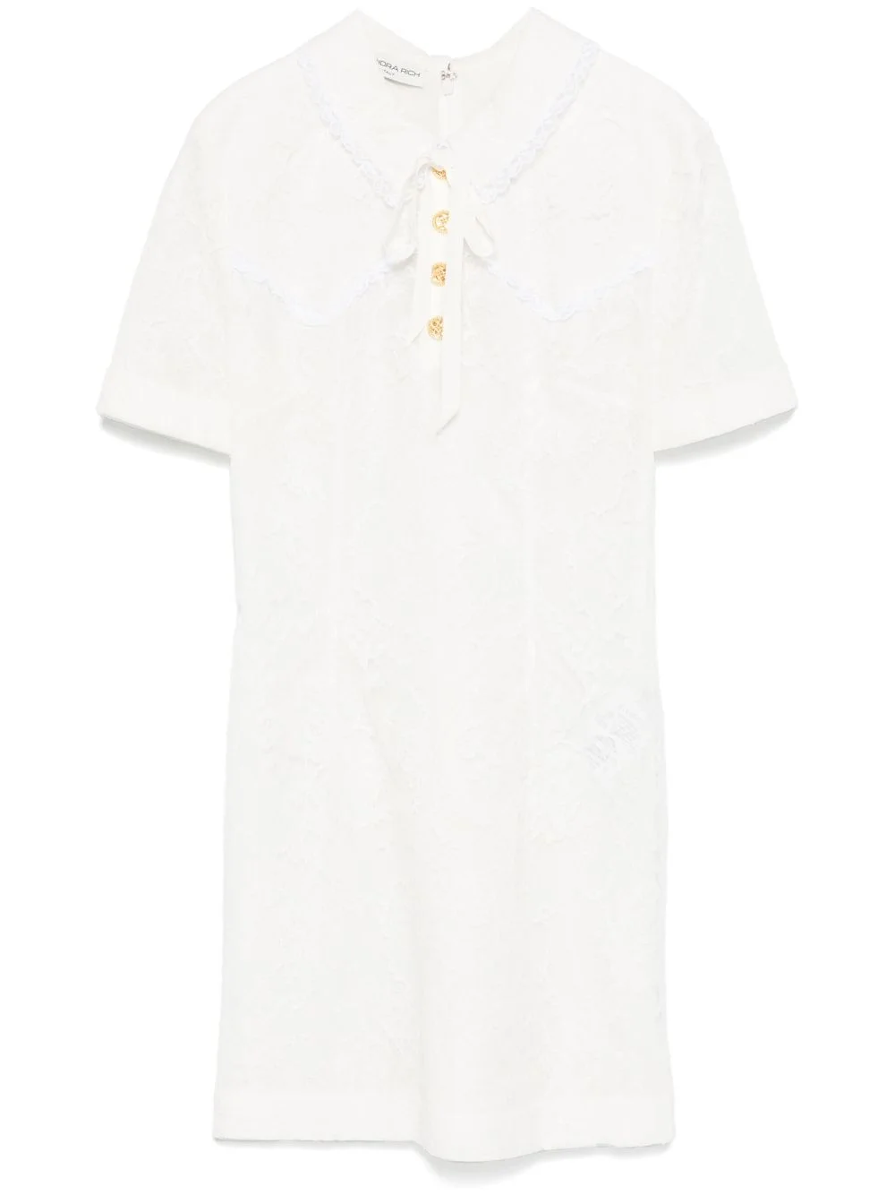 bow-detailing lace mini dress Highlights - White - Concealed rear hook and zip fastening - Classic collar - Short sleeves - Full lining Made in Italy Composition Outer: Silk 100%, Cotton 75%, Polyamide 25% Lining: Silk 100% SIZE & FIT Model measurements Height 5 ft 10 in(1.78 m) Bust/Chest 33.85 in(86 cm) Hips 36.61 in(93 cm) Waist 26.77 in(68 cm) FittingInformation Designed for a close fit throughout Made from a lightweight fabric