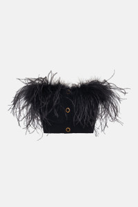 WOOL BLEND KNITTED BANDEAU WITH FEATHERS DETAILS (A)100%WO (B)100%FEATHERS Style reference : FABX3873 K4394 0060 BLACK