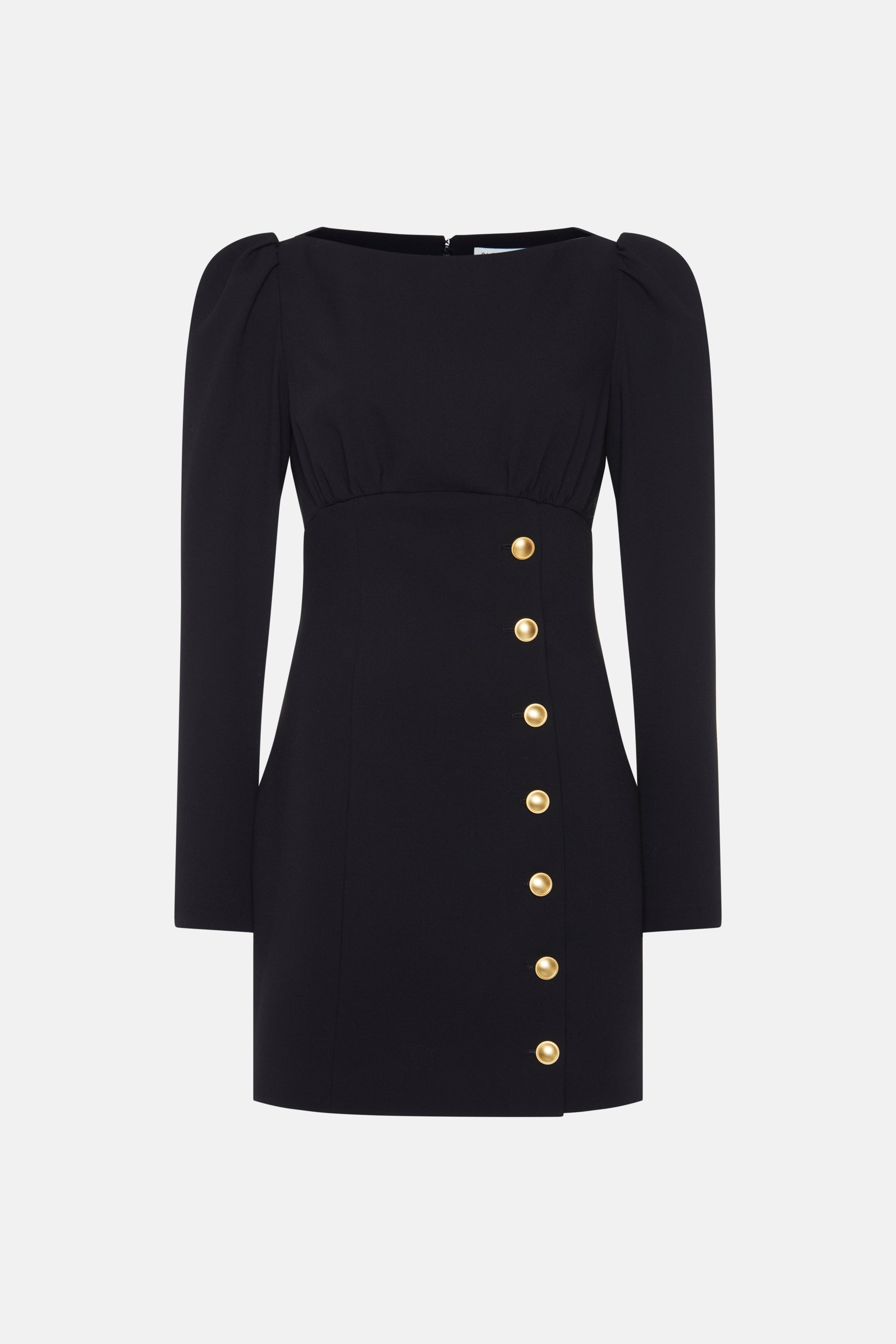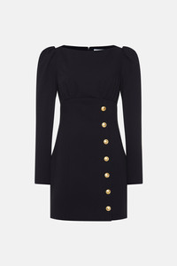 Wool crepe mini dress with buttons Composition 96% virgin wool 3% polyamide 1% elastane Lining: 95% cupro 5% elastane Colour: black Made in Italy Product code: FABX4031 F2335 0900