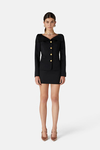 Wool satin jacket with mikado collar Composition 100% virgin wool Collar: 88% cotton 12% silk Lining: 100% viscose Colour: black Made in Italy Product code: FABX3993 F4085 0900