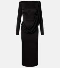 Step into the limelight with styles from Alex Perry, which have illuminated the red carpet time and time again. This midi dress features an asymmetric drape at the front and shoulder pads. Product Details - Material: 80% acetate, 20% polyester - Care instructions: dry clean - Made in China - Designer color name: Black - Item color: black - Shoulder pads - Closure: zipped back - Cuff: zipped - Short vent - Fully lined - Item number: P01051488 Size & Fit - True to size - Shoulder pad inserts - Cinched waist - Non-stretchy fabric - slit length 37cm-14.5" - The model seen in the picture is 178cm-5'10" and wearing a size UK 8