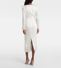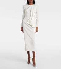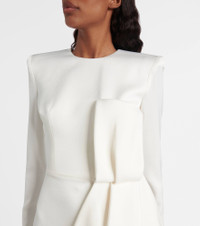 Crafted from radiant crepe satin, this long-sleeved gown from Alex Perry is designed with sharp clean lines and features an oversized bow detail at the waist and structural shoulders. Product Details - Material: 80% acetate, 20% polyester - Care instructions: dry clean - Made in China - Designer color name: White - Item color: white - Shoulder pads - Cuff: zipped - Closure: zipped back, hook-fastening back - Short vent - Item number: P01081205 Size & Fit - True to size - Shoulder pad inserts - Cinched waist - Non-stretchy fabric - The model seen in the picture is 178cm-5'10" and wearing a size UK 8