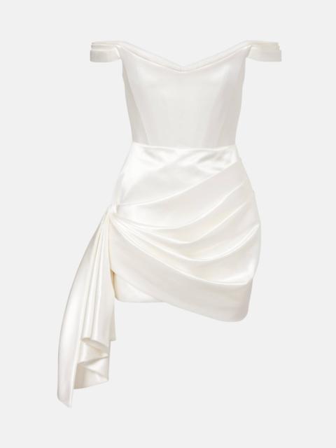 All eyes will be drawn to this stunning Alex Perry draped minidress crafted from cotton and silk duchess satin. This sartorial off-shoulder style features a built-in bustier for a form-flattering waistline and an elegant draped detail on its right hip. Product Details - Material: 65% cotton, 35% silk - Care instructions: dry clean - Made in Australia - Designer color name: White - Item color: white - Closure: zipped back - Built-in bustier - Lining: 65% cotton, 35% silk - Item number: P01091575 Size & Fit - True to size - Ideal fit for larger bust sizes - Off-the-shoulder - Internal boned corset for support - Cinched waist - Non-stretchy fabric - The model seen in the picture is 178cm-5'10" and wearing a size UK 8