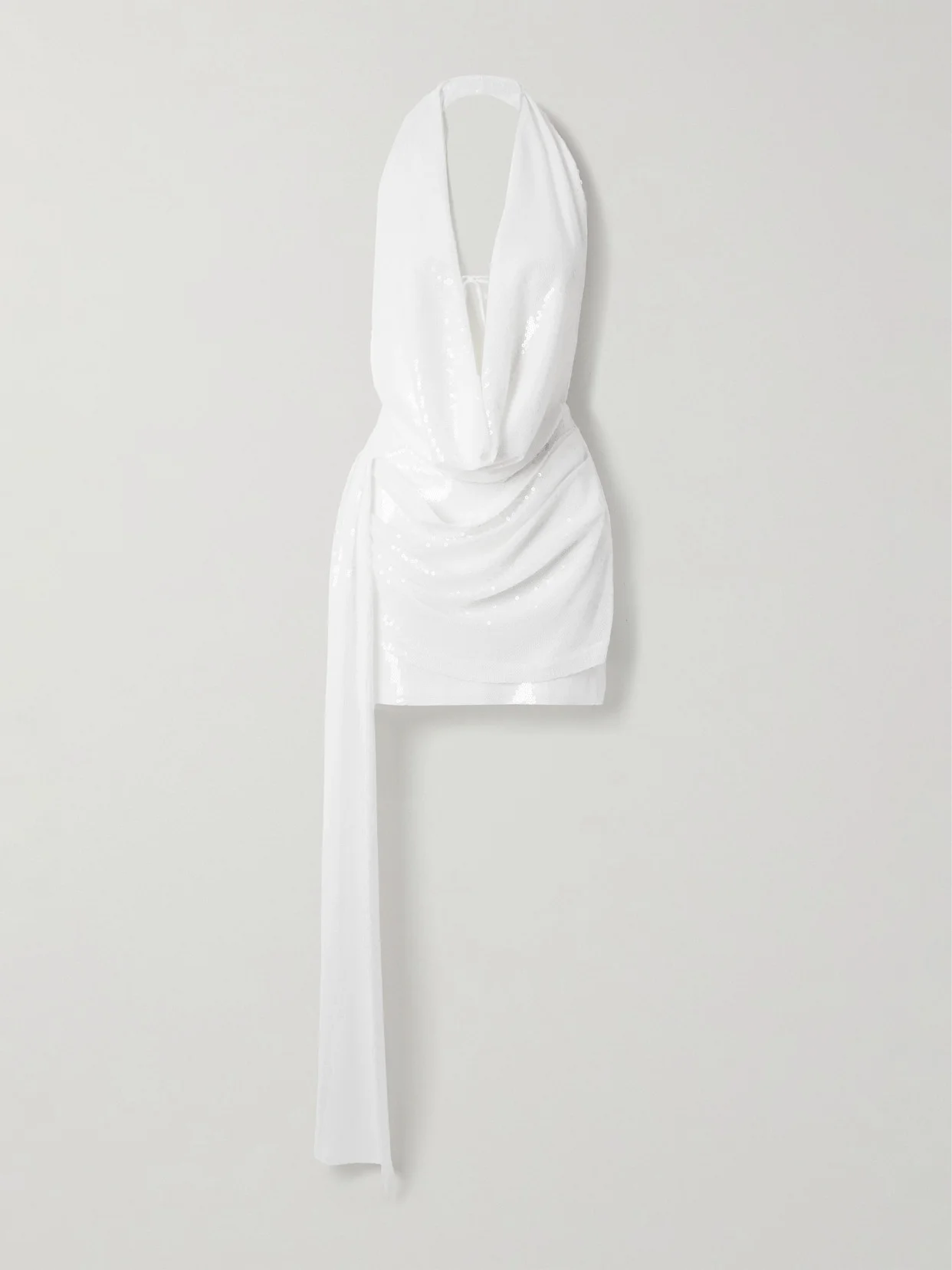 Halterneck Draped Sequined Crepe Mini Dress