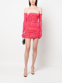 Colter ruched devore minidress Form-fitting silhouettes and impeccable constructions are at the core of Alex Perry, as the brand focuses on detailing to elevate its designs. The Colter dress is presented in a bold strawberry-pink hue with a devore pattern that adds texture. The short strapless silhouette is complemented by matching elbow gloves, a signature of the brand. Imported Composition Outer: Nylon 64%, Polyester 28%, Spandex/Elastane 8% Lining: Nylon 84%, Spandex/Elastane 16% SIZE & FIT Model measurements Height 5 ft 10 in(1.78 m) Bust/Chest 31.49 in(80 cm) Hips 36.22 in(92 cm) Waist 25.59 in(65 cm) Measurement HIPS 31.49 in(80 cm) LENGTH 23.62 in(60 cm) WAIST 25.98 in(66 cm) FittingInformation This piece fits true to size. We recommend you get your regular size Cut for a close fit Made with a mid-weight stretch fabric