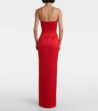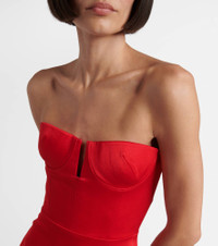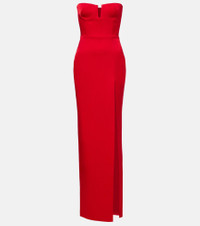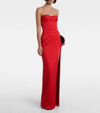 Standout in Alex Perry, whose designs are known for their sharp, refined impact on the red carpet. This crepe satin column gown gently wraps and flatters the body with subtle bustier boning, wired cups, and a dramatic thigh-high slit. Product Details - Material: 80% acetate, 20% polyester - Care instructions: dry clean - Made in China - Designer color name: Red - Item color: red - Built-in bustier - Underwired cups - Boning - Closure: zipped back, hook-fastening back - Long vent - Item number: P01081196 Size & Fit - Fits large to size - we recommend trying one size smaller - Strapless - Internal corset with underwire support - Fitted - Non-stretchy fabric - Please note: small cups - Padded top - The model seen in the picture is 178cm-5'10" and wearing a size UK 6