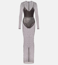 Crystal-embellished mesh maxi dress