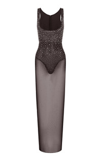 Crystal-Embellished Mesh Maxi Dress brown