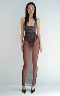 PRODUCT DETAILS - Slim fit, sleeveless, scoop neck, crystal embellishments - Concealed back zipper fastening - Composition: 88% Polyamide, 12% Elastane; Lining: 75% Polyamide, 25% Elastane - Color: Espresso - Dry clean only - Fall '25