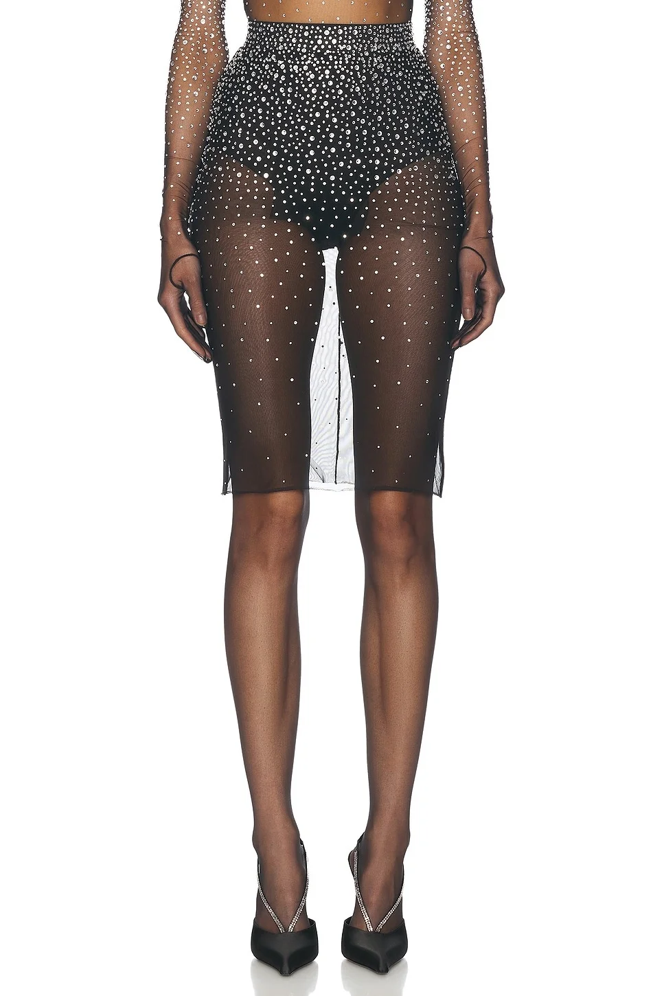 Details - Self: 88% polyamide, 12% elastane - Lining: 75% polyamide, 25% elastane - Made in China - Dry clean only - Partially lined with brief - Hidden back zipper closure - Rhinestone embellished mesh fabric - Our Style No. APEF-WQ54 - Manufacturer Style No. S0176RE25