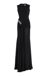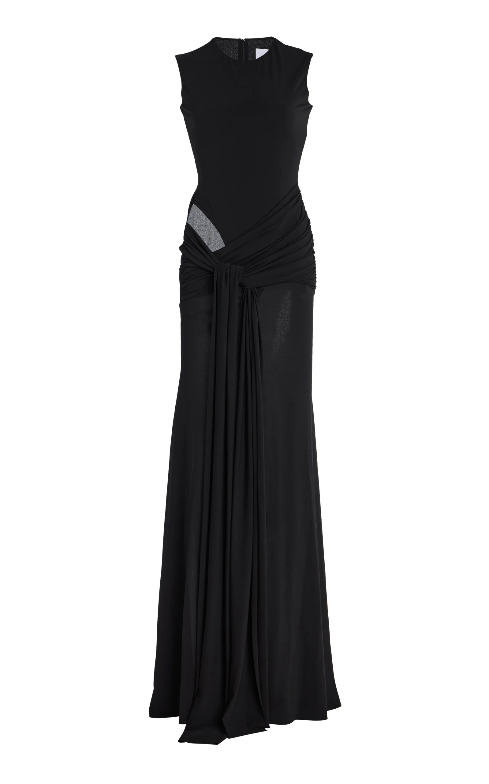 The Australian couturier is famous for his sharply clean and seductive red carpet gowns and black tie minis, each tailored with the utmost precision to ensure second-skin fits.The salient line of this ruched gown is momentarily interrupted by twisted panelling and a noticeable cut-out above the hip. The fitted body and gently flared skirt are constructed from weighted jersey, ensuring fluid movement and stunning drape. Elongate the frame further with a pair of high-heeled sandals. PRODUCT DETAILS - Spring/Summer ‘25 - Concealed zip fastening - Composition: 91% Recycled Polyester, 9% Elastane - Dry Clean - Imported SIZE & FIT - Our model is wearing a size UK 6 - Model is 5'10" with a 32" bust, 23.5" waist, and 34.5" hip