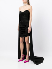 draped-detail strapless dress Since the brand's humble founding in 1992, Alex Perry has established itself as a brand that perfectly mixes block colours with glamorous silhouettes. A prime example of that is this ruched dress; presented in traditional ebony and boasting dramatic draped panelling. Imported Composition Triacetate 82%, Polyester 18% SIZE & FIT Model measurements Height 6 ft 1 in(1.86 m) Bust/Chest 34.64 in(88 cm) Hips 36.22 in(92 cm) Waist 27.16 in(69 cm) FittingInformation This piece fits true to size. We recommend you get your regular size Designed for a loose fit at the bust. If you like a closer fit, get one size down Made with a mid-weight stretch fabric Washing instructions Dry Clean Only