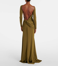 Renowned for bold designs and sculptural silhouettes, Alex Perry delivers glamorous pieces. Made from crepe jersey, this gown features a distinctive sheer finish, a draped design, and a flattering open back. Product Details - Material: 91% polyester (recycled), 9% elastane - Care instructions: dry clean - Made in China - Designer color name: Olive - Item color: green - Closure: invisible zipper - Item number: P01051485 Size & Fit - True to size - Low back - Cinched waist - Stretchy fabric - The model seen in the picture is 178cm-5'10" and wearing a size UK 8