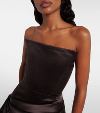 Standout in Alex Perry, whose designs are known for their sharp, refined impact on the red carpet. Made from cotton and silk satin, this bustier dress is enriched with elegant draping and features a train on the side for a glamorous finish. Product Details - Material: 70% cotton, 30% silk - Care instructions: dry clean - Made in Portugal - Designer color name: Dark Brown - Item color: brown - Lining: 80% acetate, 20% polyester - Boning - Closure: invisible zipper - Item number: P01103731 Size & Fit - True to size - Strapless - Internal boned corset for support - Non-stretchy fabric - The model seen in the picture is 178cm-5'10" and wearing a size UK 8