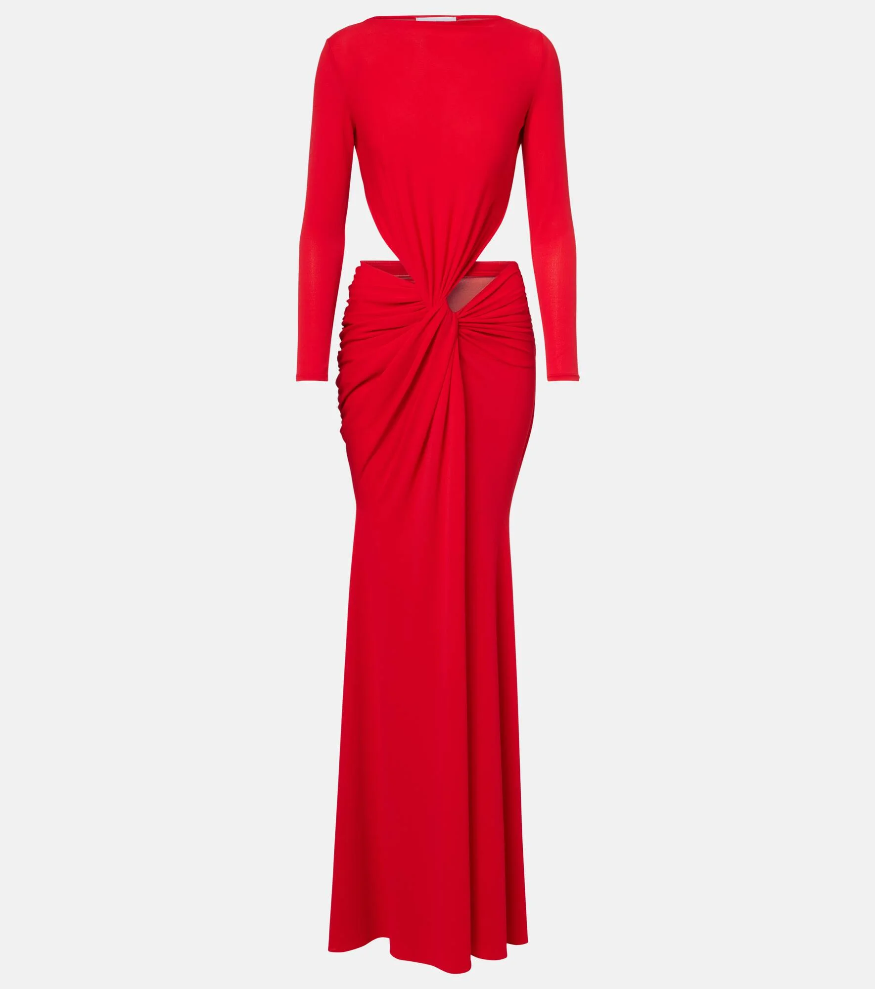 Stand out in Alex Perry, whose designs are known for their sharp, refined impact on the red carpet. This gown is made from semi-sheer crepe jersey with a daring open back and gathering on the front. Product Details - Material: 91% polyester (recycled), 9% elastane - Care instructions: dry clean - Made in Australia - Designer color name: Red - Item color: red - Side slits - Item number: P01081193 Size & Fit - True to size - Low back - Semi-sheer - Cinched waist - Stretchy fabric - The model seen in the picture is 178cm-5'10" and wearing a size UK 8