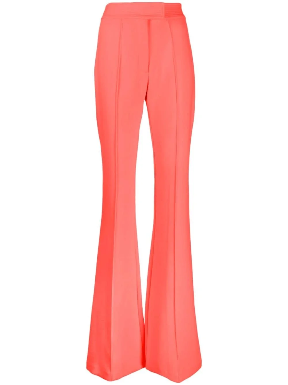 high-waisted flared trousers Highlights - Strawberry red - Tonal stitching - Pleat detailing - Concealed front fastening - High-waisted - Flared - Two rear welt pockets - Straight hem Imported Composition Polyester 63%, Acetate 37% SIZE & FIT Model measurements Height 5 ft 10 in(1.77 m) Bust/Chest 28.74 in(73 cm) Hips 35.82 in(91 cm) Waist 24.4 in(62 cm) FittingInformation Designed with a flared hem, these trousers allow for a close fit at the waist with a slim fit over the leg and widening towards the hem Particularly long in length; consider your own measurements Made from a midweight non-stretch fabric, this piece offers minimal elasticity when worn This piece fits true to size – those with curvy hips may wish to take one size up
