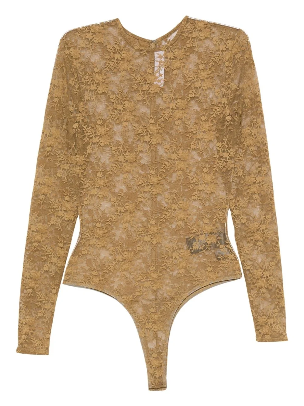 lace long-sleeve bodysuit Highlights - Khaki - Lace design - Long sleeves - Round neck - Just a reminder that this piece must be tried on over your own garments. Imported Composition Polyamide 90%, Spandex/Elastane 10% SIZE & FIT Model measurements Height 5 ft 10 in(1.78 m) Bust/Chest 33.85 in(86 cm) Hips 36.61 in(93 cm) Waist 26.77 in(68 cm) Washing instructions Dry Clean Only