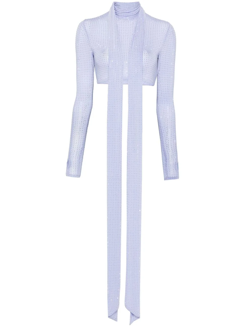 long-sleeve scarf crop top Highlights - Lavender purple - Stretch-jersey - Scarf detailing - Long sleeves - Concealed rear zip fastening - Crystal embellishment - Thumb slots - Unlined - Elasticated hem - Cropped Imported Composition Nylon 87%, Elastane 13% Washing instructions Dry Clean Only