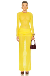 Details - 95% polyester, 5% elastane - Dry clean only - Unlined - Hidden back zipper closure - Overlap fabric design at waist with ruching detail - Mesh fabric with side slit - Garment is intentionally sheer, undergarments will show through - Made in China - Our Style No. APEF-WD255 - Manufacturer Style No. D1538PF25