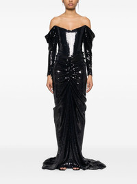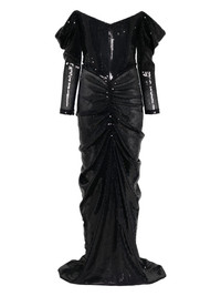 off-shoulder draped midi dress Highlights - Navy blue Imported Composition Lining: Acetate 84%, Polyester 16% Outer: Polyester 95%, Elastane 5% SIZE & FIT Model measurements Height 5 ft 10 in(1.78 m) Bust/Chest 32.67 in(83 cm) Hips 35.43 in(90 cm) Waist 23.22 in(59 cm) FittingInformation Designed for a close fit throughout Made from a midweight fabric
