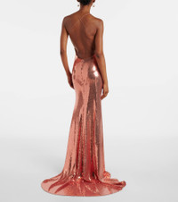Alex Perry’s designs have lit up the red carpet time and again—and this gown is no exception. Covered in lustrous sequins, this piece features a plunging V-neckline and an open back with delicate cross-back straps. Product Details - Material: 95% polyester, 5% elastane - Care instructions: dry clean - Made in China - Designer color name: Copper - Item color: orange - Closure: invisible zipper - Item number: P01051504 Size & Fit - True to size - Sizing adapted to taller women - Low back - Fitted - Stretchy fabric - slit length 93cm-36.5" - The model seen in the picture is 178cm-5'10" and wearing a size UK 8