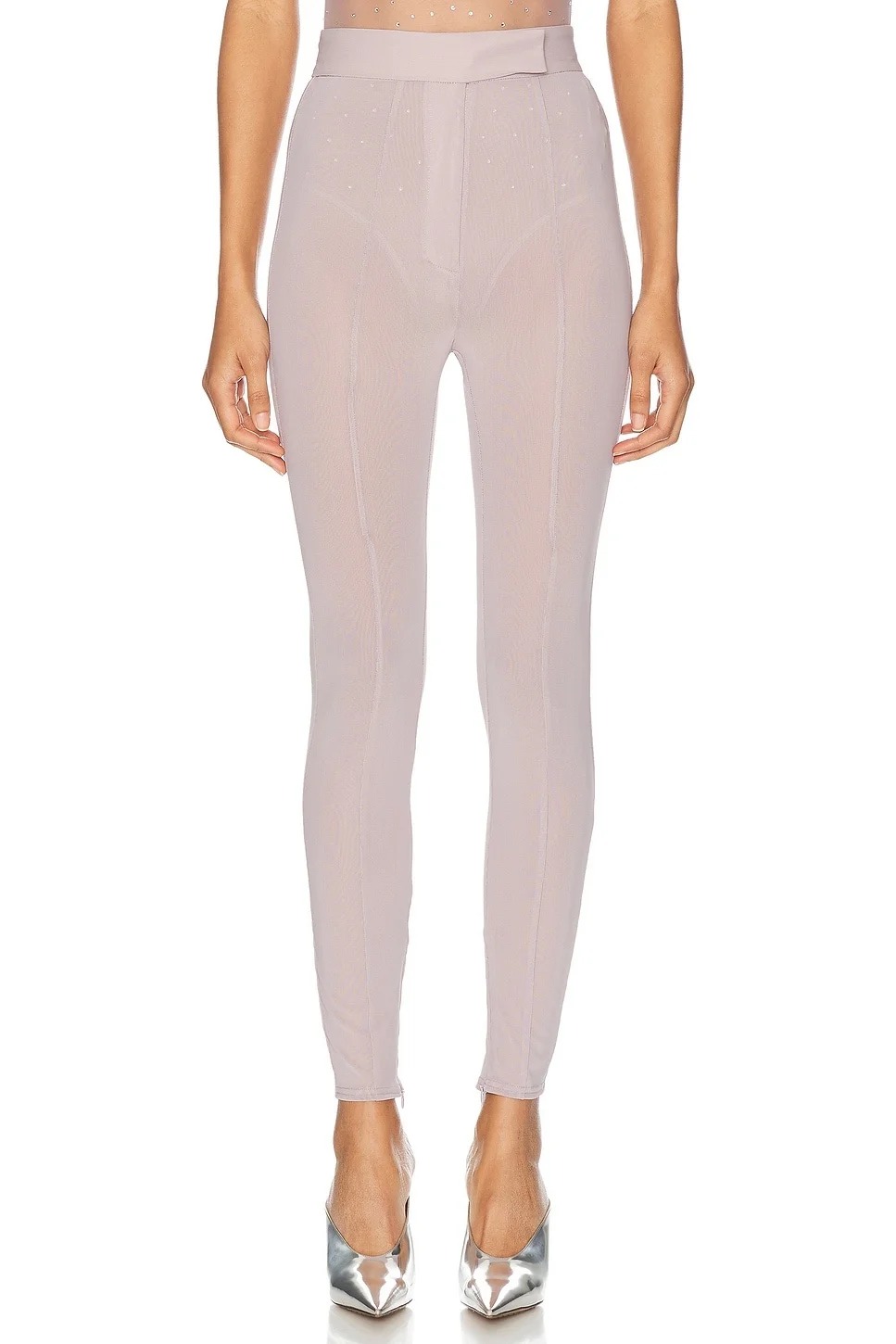 Details - 75% polyamide, 25% elastane - Made in China - Dry clean only - Zip fly with hook and bar closure - Zipper closure at ankles - Mesh fabric - Garment is intentionally sheer, undergarments will show through. - Please note undergarment not included - Our Style No. APEF-WP55 - Manufacturer Style No. P0099RE25