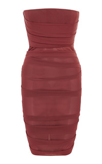 PRODUCT DETAILS - Strapless, corset bodice, ruched, midi hem - Lining: Power Mesh - Composition: Power Mesh - Color: red - Concealed zip fastening along back - Made in China