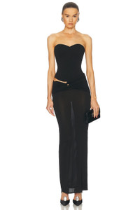 Details - 91% recycled polyester, 9% elastane - Made in China - Dry clean only - Unlined - Hidden back zipper closure - Boned bodice with subtly draped skirt with tie detail at front - Crepe fabric - Our Style No. APEF-WD221 - Manufacturer Style No. D1479SS25