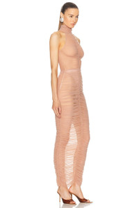 Ruched Mesh Maxi Dress
