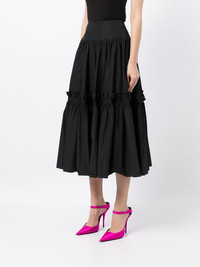Ruffled Full silk midi skirt